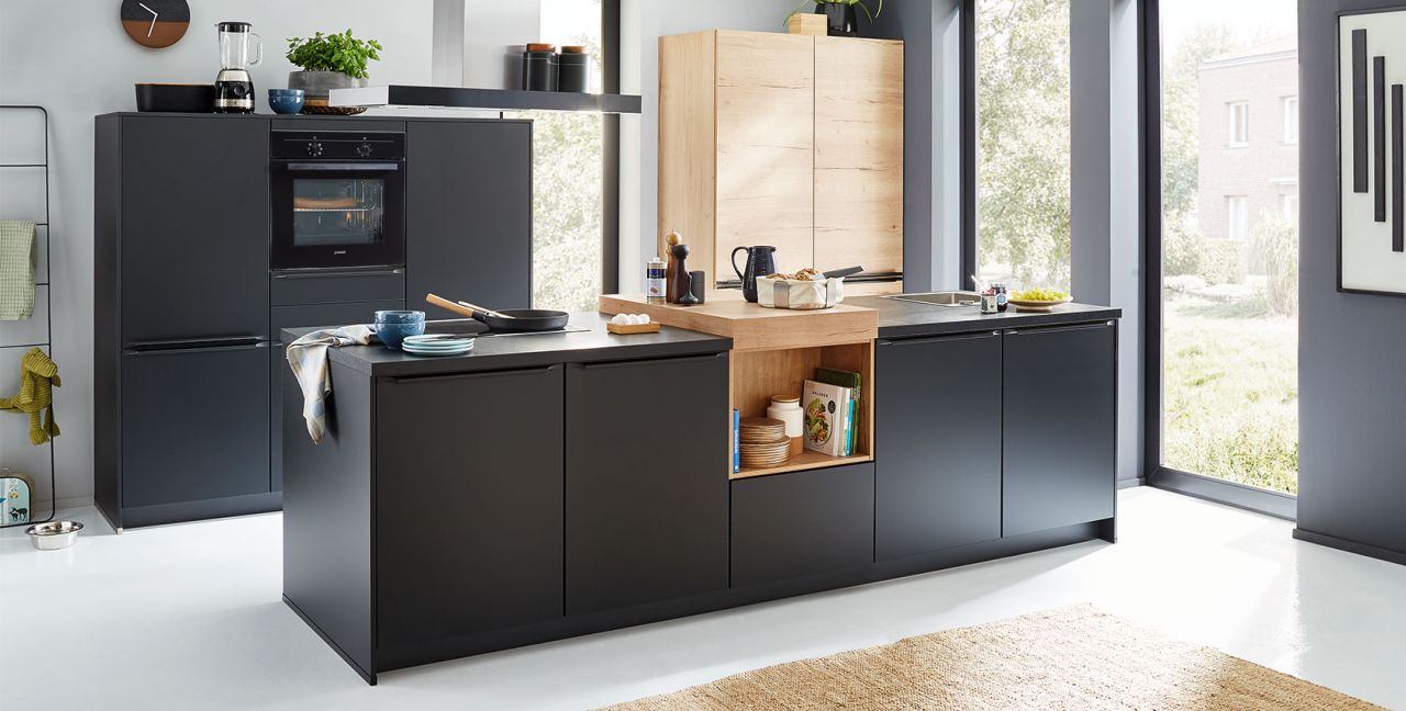 Inklusive Einbaubackofen schwarz Junker JF1100061 Energieeffizienzklasse A, Glaskeramik Kochfeld Junker JR36DT54, Inselesse Edelstahl Elica JOYE INSEL-A Energieeffizienzklasse A, Kühlschrank mit **** Gefrierfach Junker JC30GCSE0 Energieeffizienzklasse E, Einbauspüle Edelstahl Rodi Okio Line 85 Deep, Unterschrankregal.