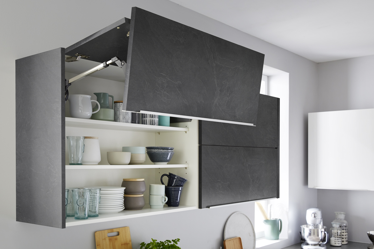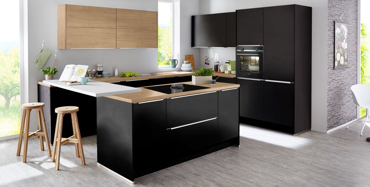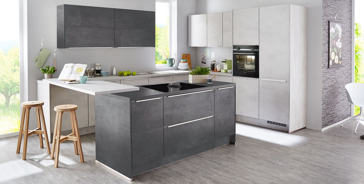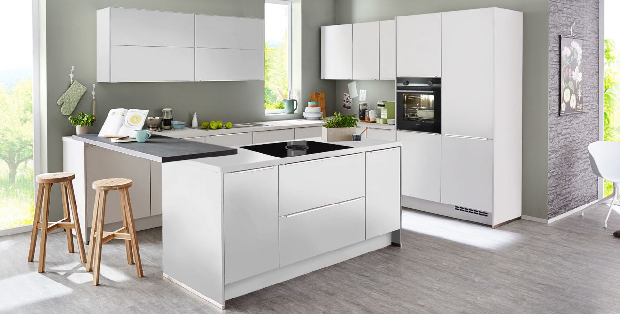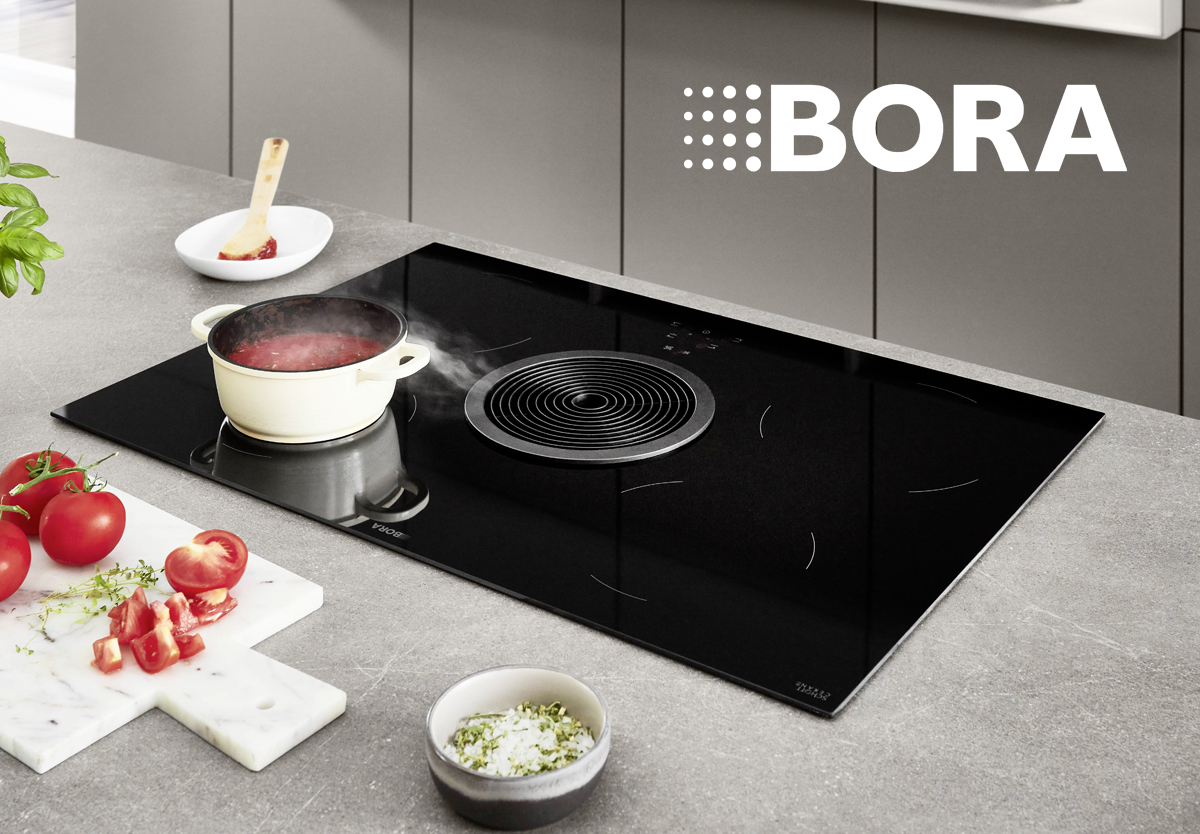 Inklusive Einbaubackofen Edelstahl Siemens HB510ABR1 Energieeffizienzklasse A, Glaskeramik Kochfeld mit Induktion und Kochfeldabzug (Umluft) Bora GP4U, Kühlschrank Junker JC20KCSE0 Energieeffizienzklasse E, Einbauspüle Edelstahl Rodi Okio Line 85 Deep, Unterschrank mit Großraumauszügen, Wandschränken mit Falt-Lifttür, Esstheke.