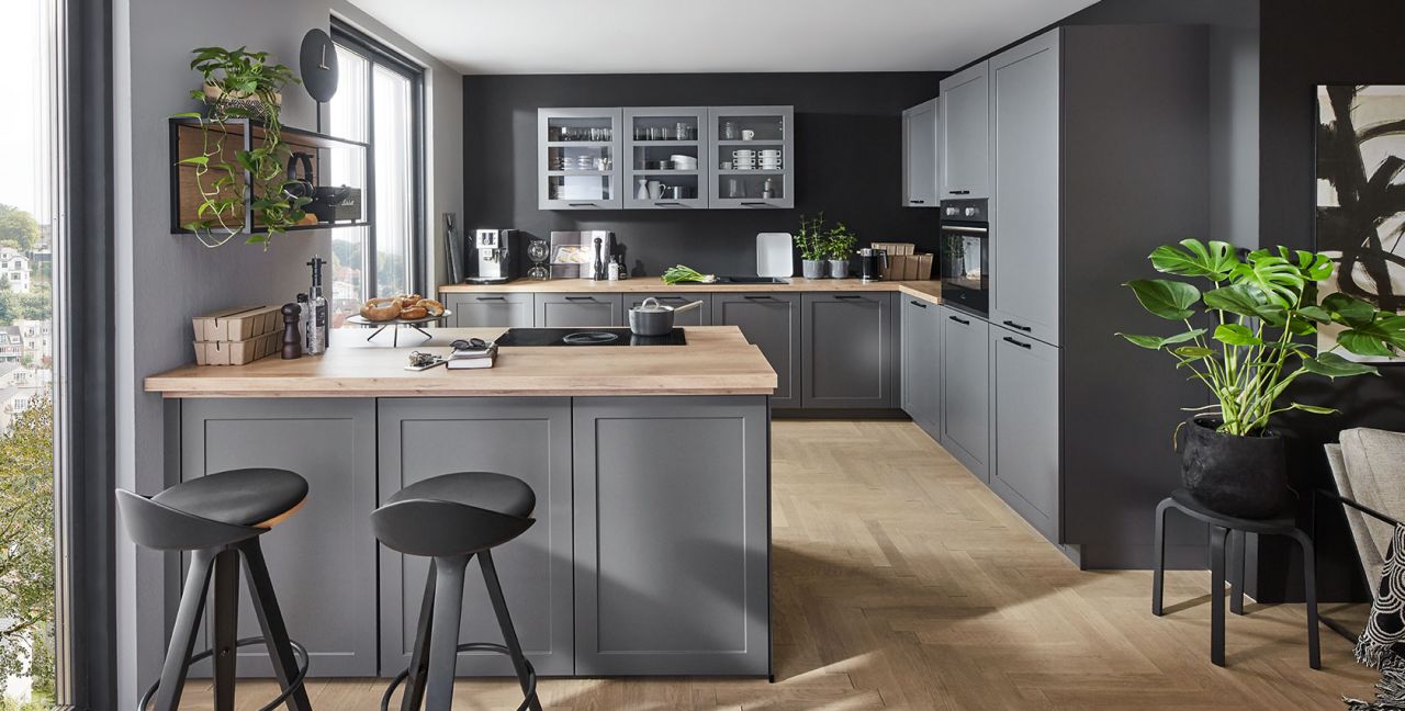 Inklusive Einbaubackofen Edelstahl Progress PBN13002X Energieeffizienzklasse A, Glaskeramik Kochfeld mit Induktion und Kochfeldabzug (Umluft) Bora GP4U, Kühlschrank mit **** Gefrierfach Progress PK1255 Energieeffizienzklasse E, Einbau-Designspüle Franke Strata STG614-78, XL-Schränken, Wandschränken mit Glasrahmentür, Regal Smartcube, Esstheke.